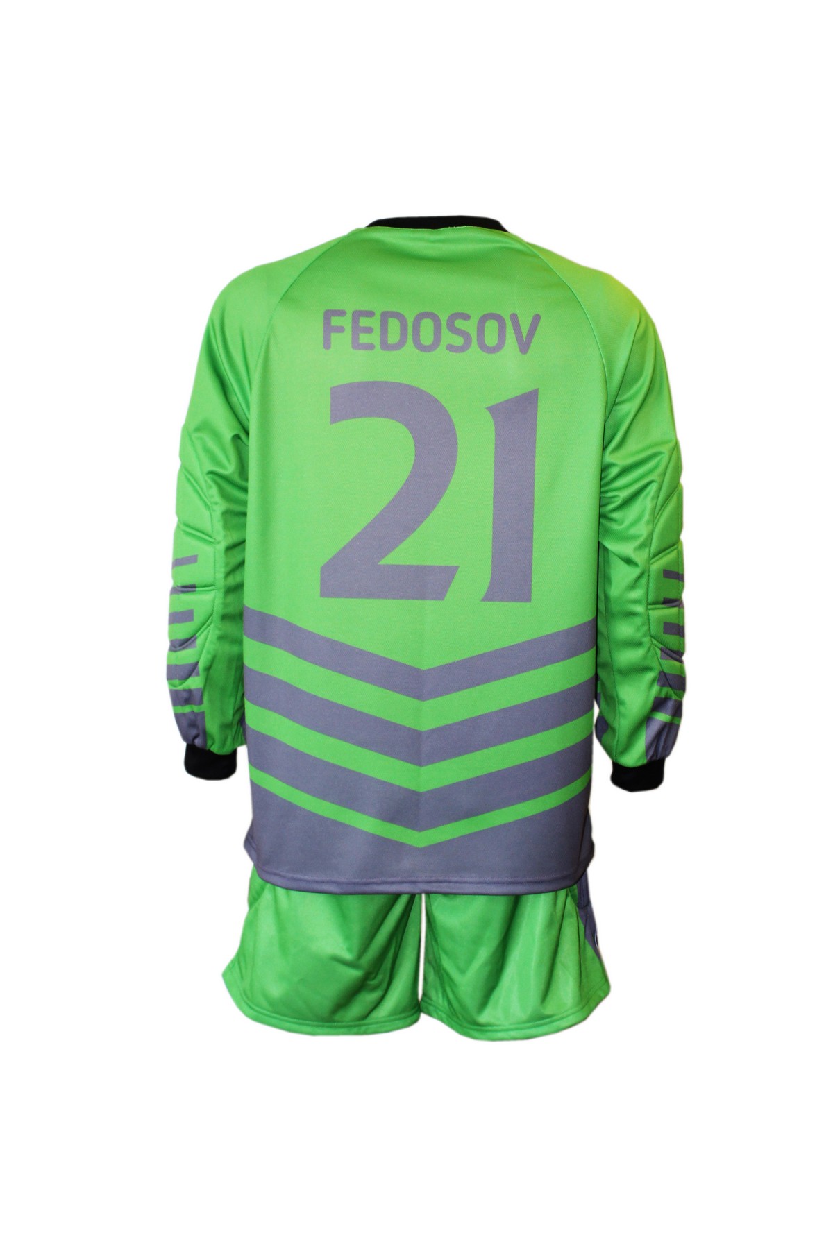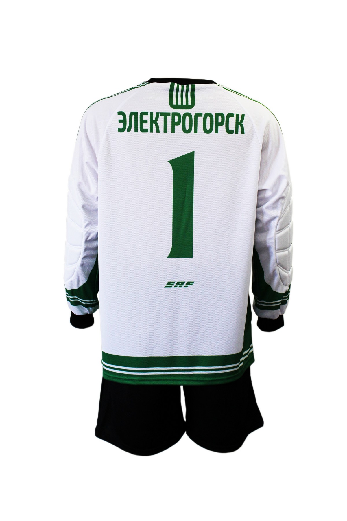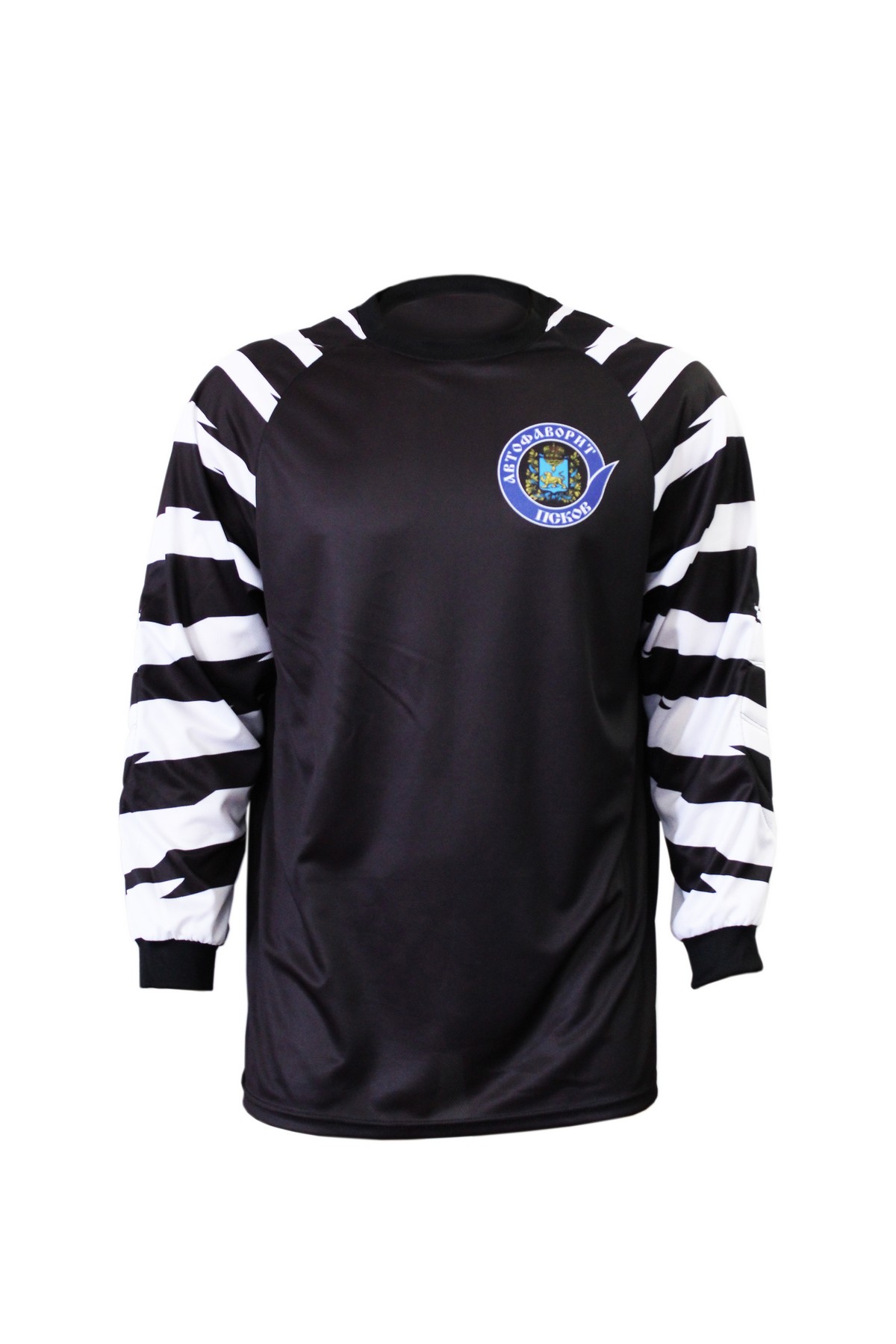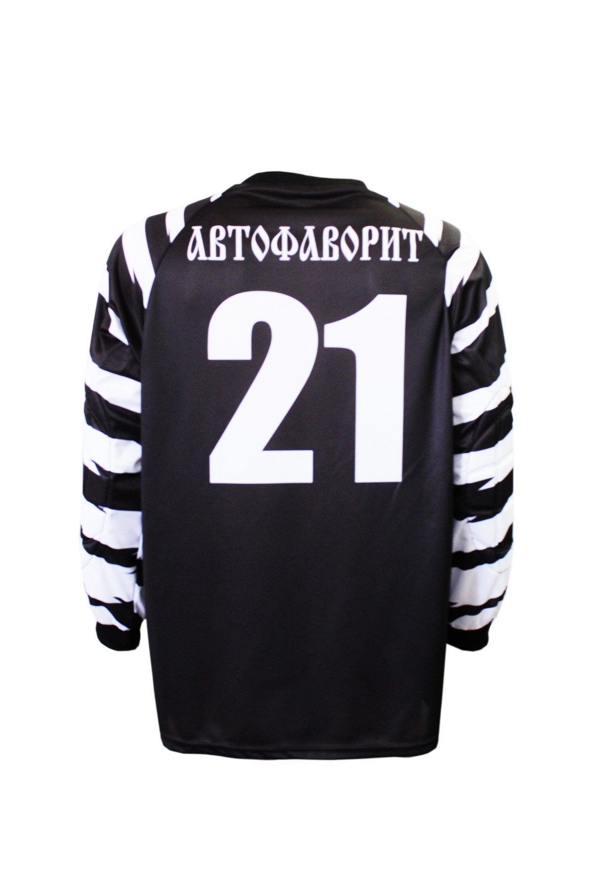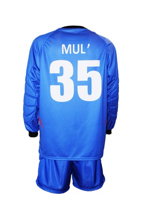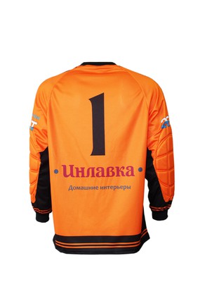 Классическая, футбольная, вратарская майка прямого силуэта, средней свободы. Рукав покроя реглан, длинный, с манжетом из подвяза. Горловина круглая или треугольная, обработана воротником. На локтях специальные накладки из поролона для защиты при падениях.